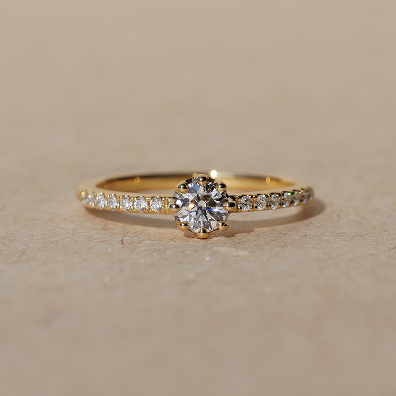 Diamonds are evaluated based on a quality grading standard known as the 4Cs. The price of each diamond varies depending on the carat weight and grade selected. All our center stone cuts are 3EX H&C, which represents the highest quality.
