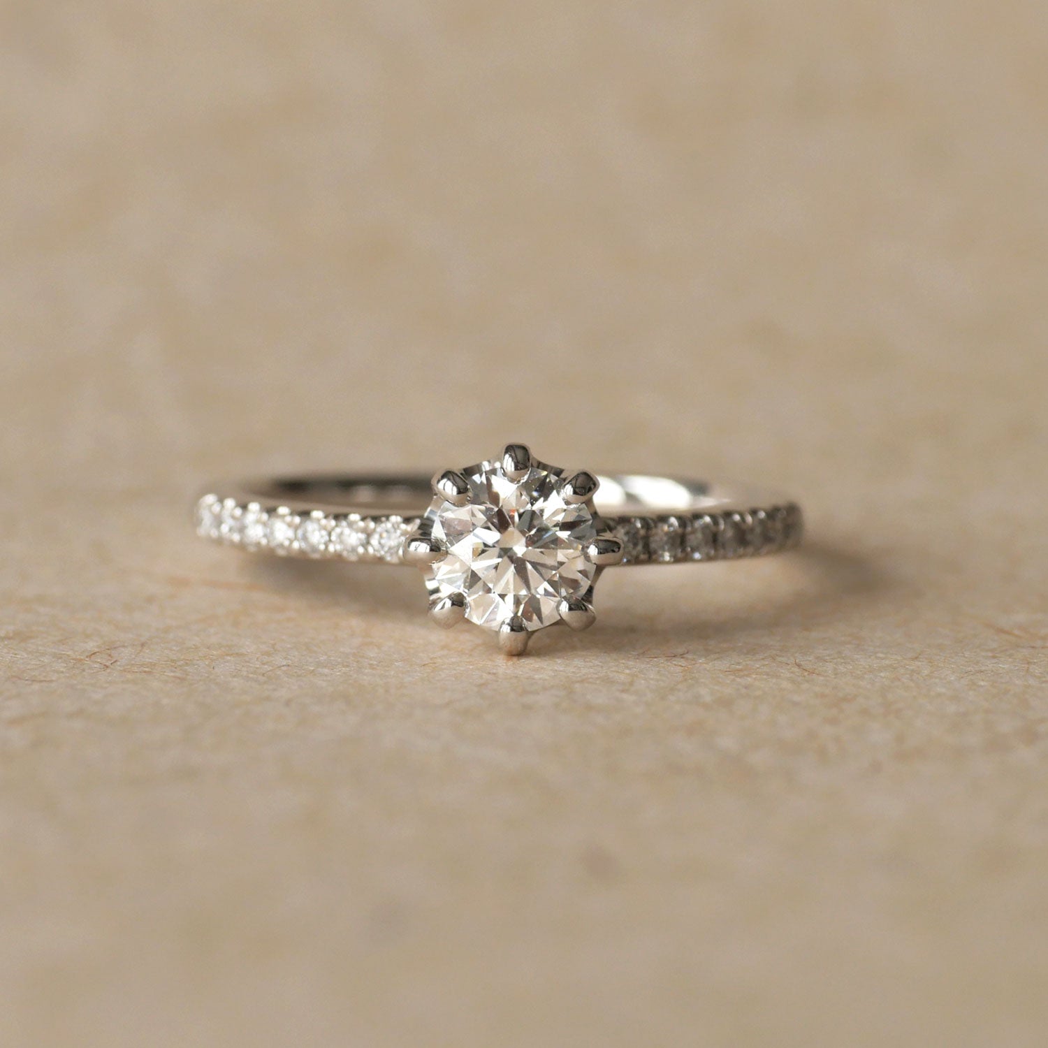 Diamonds are evaluated based on a quality grading standard known as the 4Cs. The price of each diamond varies depending on the carat weight and grade selected. All our center stone cuts are 3EX H&C, which represents the highest quality.
